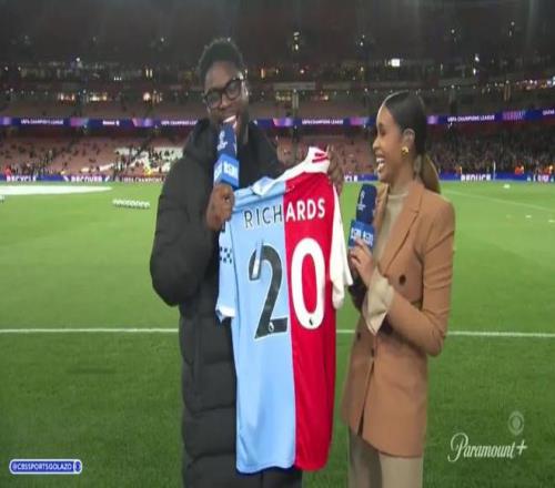 节目直播中,理查兹收到一件阿森纳与曼城的缝合球衣