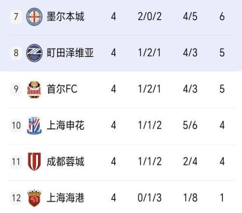 目前中超第2的上海申花,4轮1胜1平2负,积4分位列第10。中超第3的成都蓉城,同样是4轮1胜1平2负,积4分排在第11。当前高居中超榜首的上海海港,4轮0胜1平3负,仅积1分第12垫底!