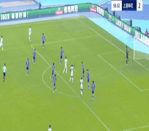 上半场补时阶段,高天意面对三人防守完成过人,之后的射门被挡出了底线。