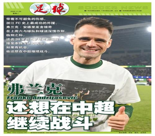 撰稿/左瑞带着不可避免的伤感,浙江FC史上最成功的外援弗兰克·安德里亚舍维奇在上周六与球队和球迷深情作别。临别之际,这名34岁的克罗地亚前国脚接受本报专访时表示,如果有机会,他还想在中超继续战斗。