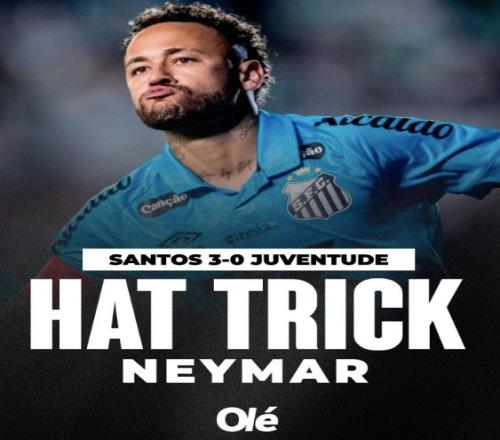 在巴甲联赛第37轮一场关乎保级的焦点战中,桑托斯作客挑战尤文图德。此役内马尔首发登场,并分别于第56分钟、第65分钟和第73分钟3次左右开弓破门,上演帽子戏法,凭借一己之力帮助球队取得3-0的胜利。