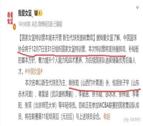 中国篮协这一次终于开窍了,为2米26的张子宇开绿灯。众所周知,由于与山东队合同迟迟未能签约,张子宇错过了WCBA新赛季揭幕战。尽管现如今她已经与山东队完成签约,不过,张子宇最快也要等到明年1月份还有机会登场。这也就意味着,接下来一个月内,张子宇将面临无球可打的尴尬局面。为此,中国篮协也极为给力,他们特地为张子宇增加了一个女篮特训训练营,包括张子宇、张茹等人在内,他们都入选了该训练营。