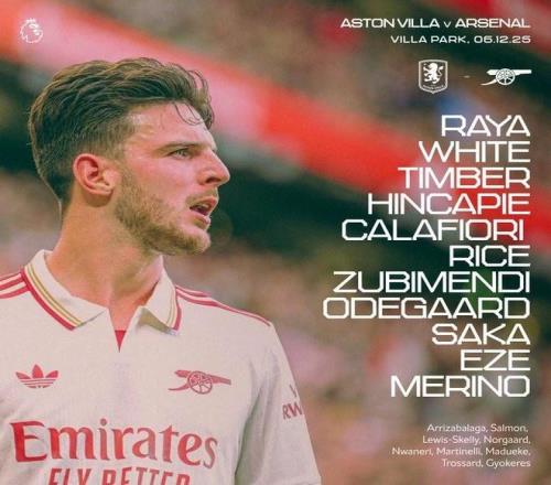 北京时间12月6日20:30,英超第15轮焦点战,阿森纳作客维拉公园球场挑战阿斯顿维拉,本场主裁判为彼得-班克斯,赛前双方首发出炉。