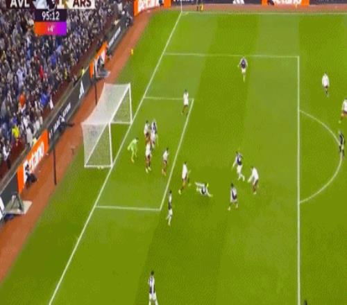 第10分钟,大马丁大脚长传,苏维门迪头球被断,麦金送出直塞,沃特金斯禁区内变向过人,随后单刀抽射,拉亚飞身将球扑出,阿森纳逃过一劫。